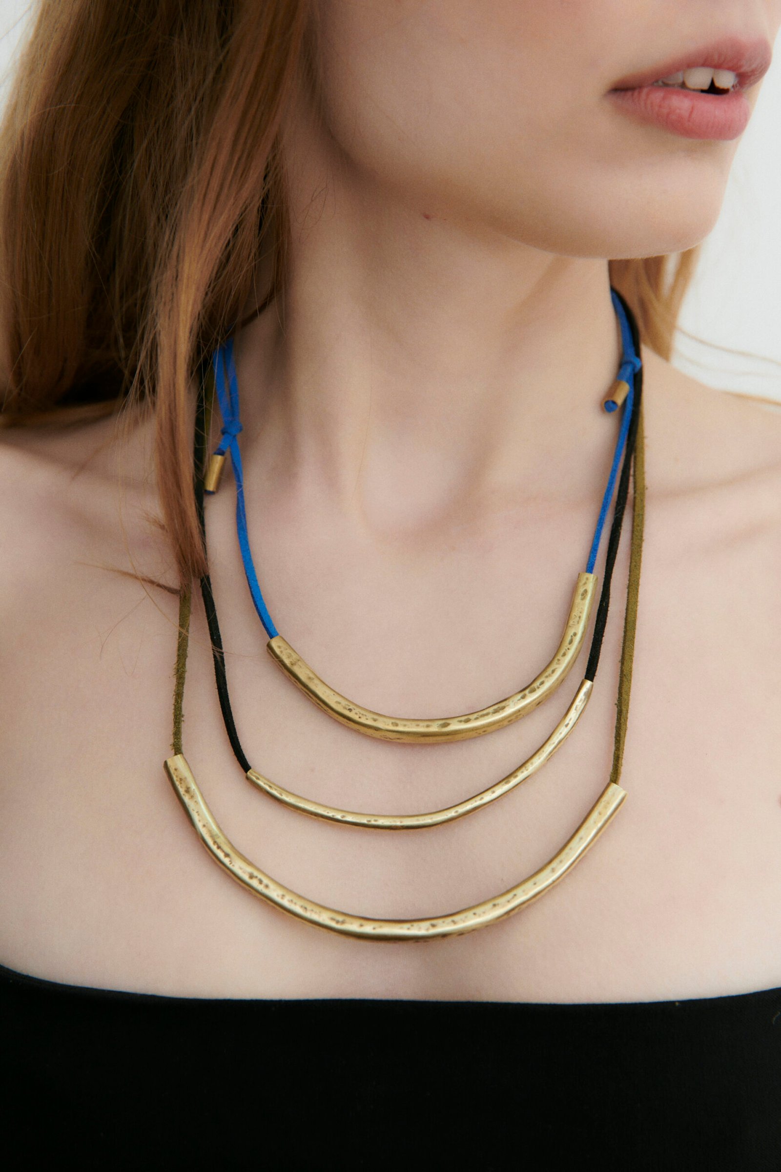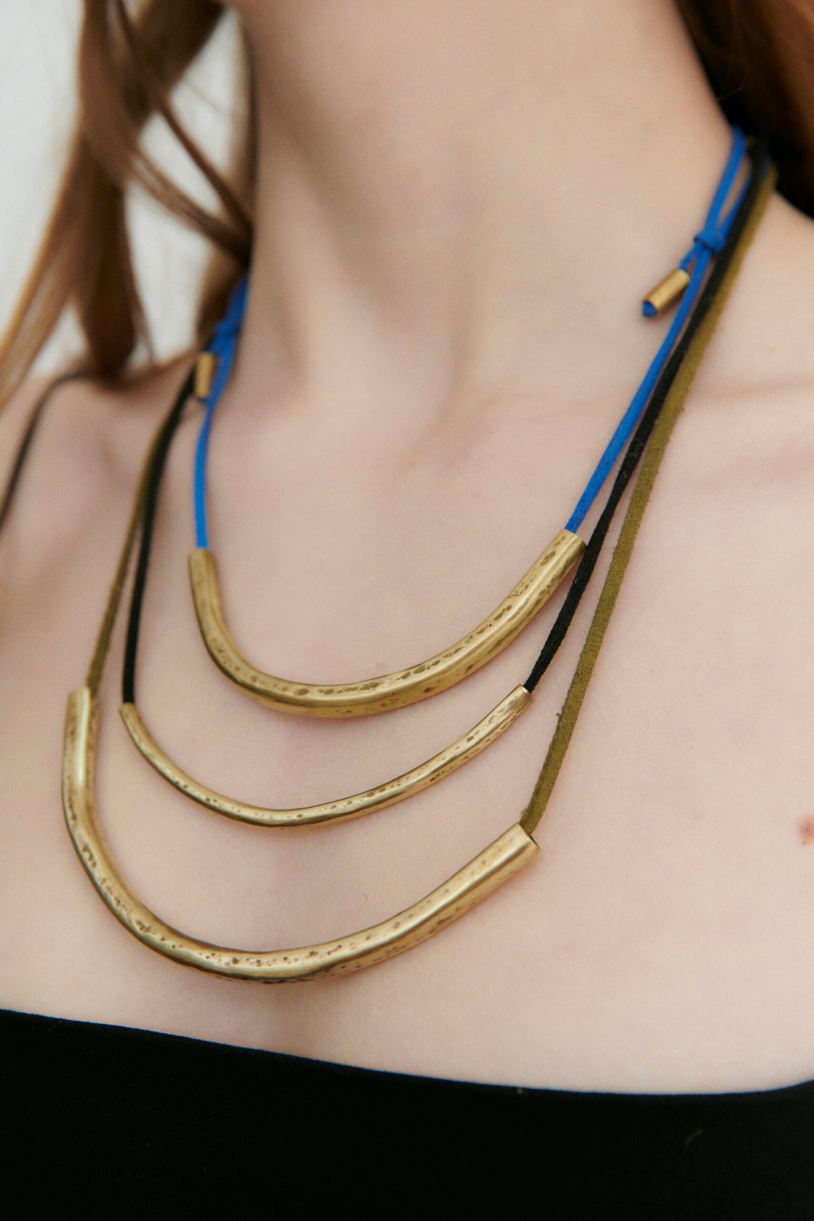 Collar regulable hecho a mano en bronce con cordones de gamuza. Usalos por separado o los 3 juntos (más es más).